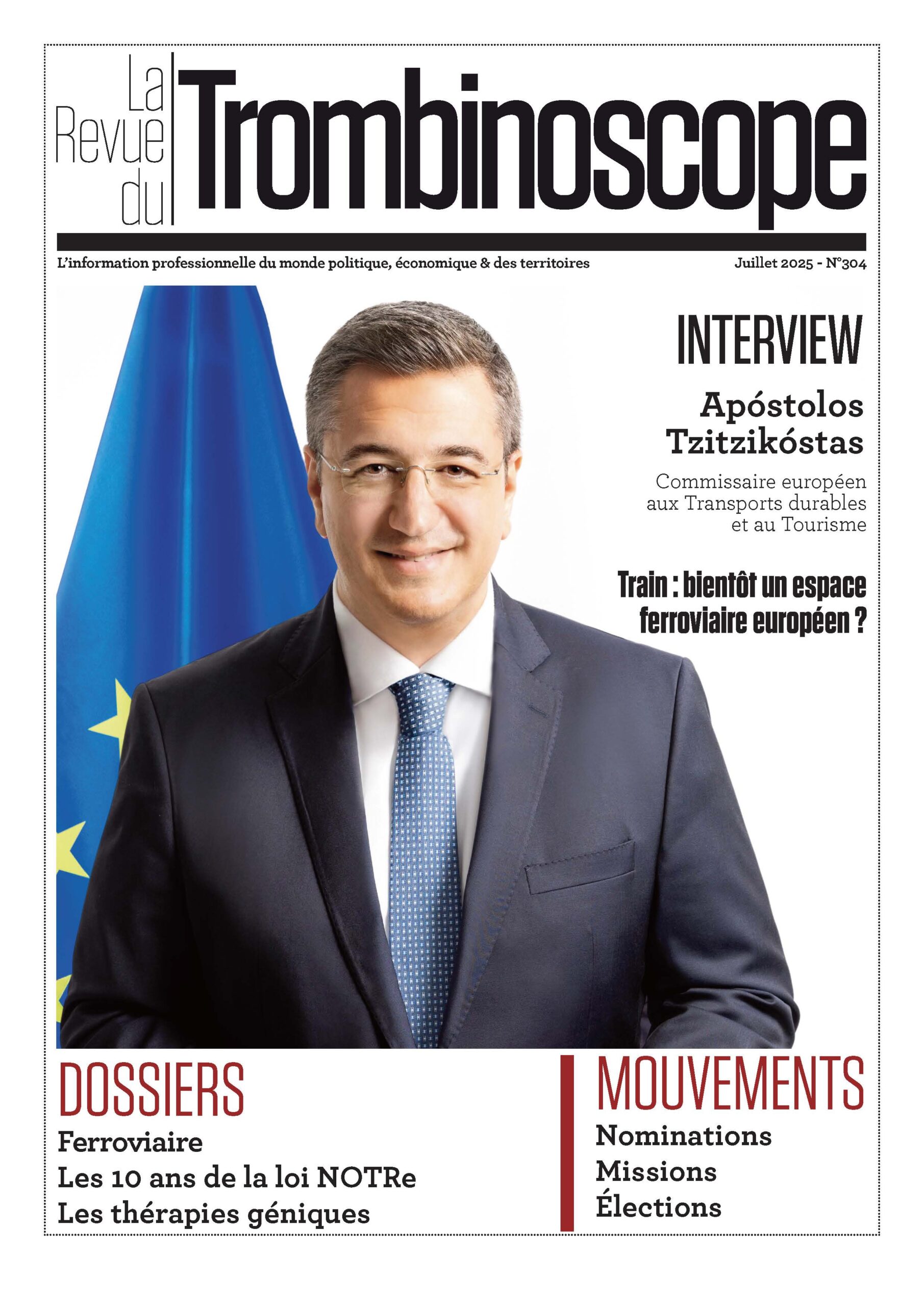 La Revue du Trombinoscope N° 304 Juillet 2025 INTERVIEW : Apóstolos Tzitzikóstas DOSSIERS : Ferroviaire Les 10 ans de la loi NOTRe Les thérapies géniques MOUVEMENTS : Nominations Missions Elections Téléchargez un extrait