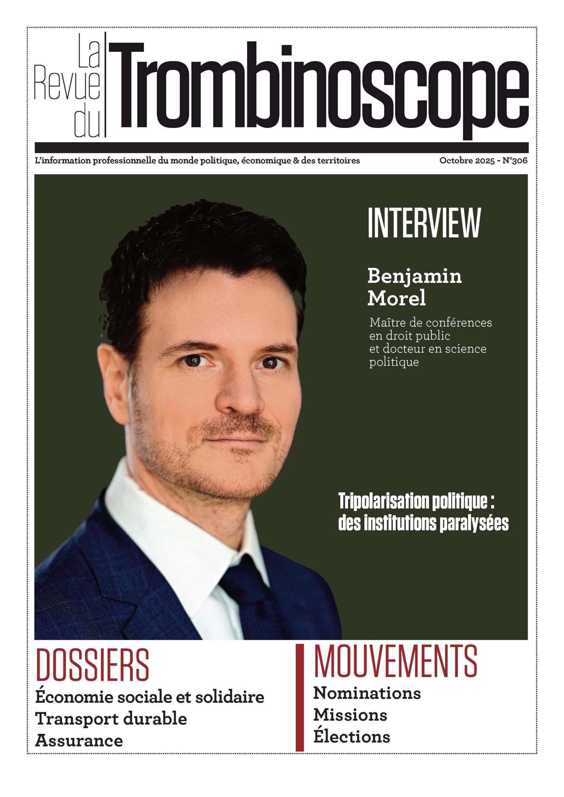 La Revue du Trombinoscope N° 306 Octobre 2025 INTERVIEW : Benjamin Morel DOSSIERS : Economie sociale et solidaire Transport durable Assurance MOUVEMENTS : Nominations Missions Elections Téléchargez un extrait